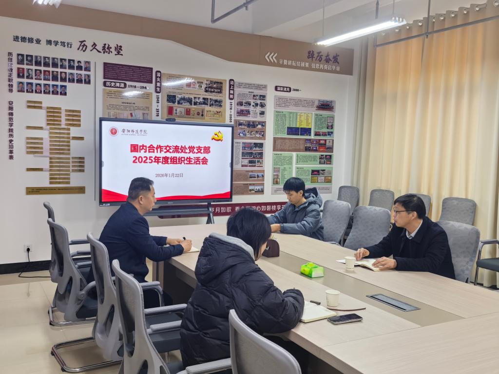 为深入学习贯彻党的二十届四中全会精神,锲而不舍落实中央八项规定及其实施细则精神,持续推进作风建设常态化长效化,根据学校党委相关要求,1月22日,国内合作交流处党支部召开2025年度民主生活会,会议由党支部书记郭成立主持,部门领导班子成员参加会议。