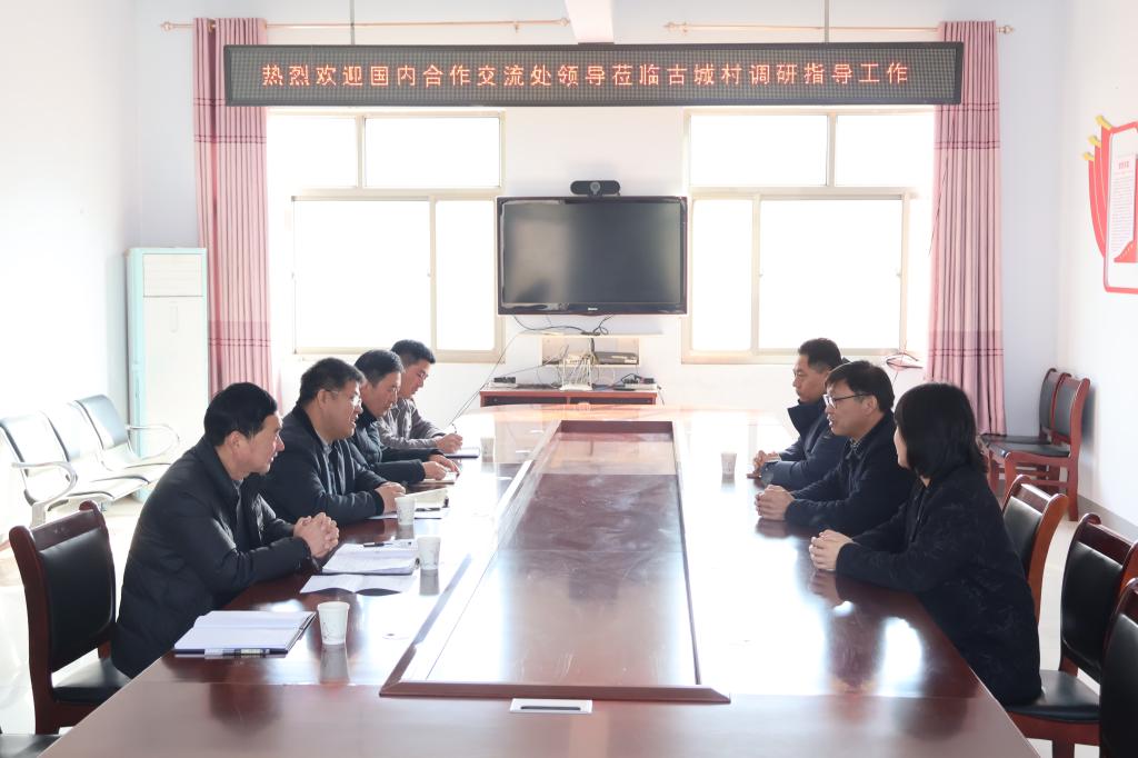 在古城村、杨家寨村会议室,郭成立一行与驻村第一书记和队员进行了座谈交流,我校驻村第一书记、党委办公室副主任张俊亮、党委组织部副部长訾彦锋对国内合作交流处一行支持定点帮扶工作表示欢迎,并分别介绍了驻村帮扶工作开展情况、特色做法和取得的阶段性成效。郭成立对驻村工作队坚守岗位、履职尽责所取得的工作成绩和无私奉献艰苦奋斗的精神风貌表示高度赞誉,并表示国内合作交流处将切实履行好校地合作的职能,协调配合学校相关部门持续发挥人才、智力、资源等优势,为驻村工作队安心干事、建功基层保驾护航,希望驻村工作队再接再厉、铆足干劲,以更硬作风、更实举措,做好乡村振兴驻村帮扶各项工作。